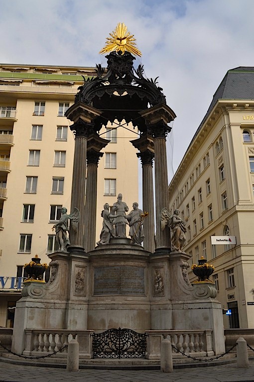 Następnie udaję się na Hoher Markt. Jest to najstarszy plac w mieście, daleko mu jednak od splendoru pozostałych skwerów Wiednia. Pod nim znajdują się ruiny pretorium (siedziby komendanta obozu Vindobona), w którym w 180 roku zmarł cesarz rzymski Marek Aureliusz. Pod budynkiem nr 3 znajdują się ruiny dwóch budynków mieszkalnych rzymskich gubernatorów, które oglądać można w stworzonym w tym miejscu muzeum. Na placu tym od 1328 roku do XVIII wieku odbywały się sądy miejskie. Środek placu zajmuje barokowa studnia przedstawiająca zaślubiny Najświętszej Marii Panny z Józefem (fot. obok). W rogu placu umieszczono zegar figuralny. Codzienne o godzinie 12tej obejrzeć można przesuwające się w nim 12 postaci – jako pierwsza pojawia się podobizna Marka Aureliusza. Zegar jest uroczy ponieważ daty i godziny nie są przedstawiane w ruchu okrężnym (tak jak w standardowym zegarze), lecz są umieszczone w linii poziomej. Godziny są zapisane cyframi rzymskimi, natomiast minuty arabskimi. Kolejność wychodzących postaci oraz zdjęcia zegara poniżej.