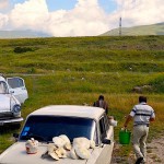 Ludzie, tradycje, obyczaje, krajobrazy… Oj na ten temat można by napisać mnóstwo. Najłatwiej zacząć od tego ostatniego. Krajobrazy są bardzo różnorodne, od wysokich wiecznie ośnieżonych gór po bardzo rozległe równiny. Niektóre z nich obejrzeć można na zdjęciach niżej. Ludzie zamieszkujący Górski Karabach są bardzo gościnni, otwarci, przyjacielscy. Czasami bywa to męczące, bo nie sposób uniknąć wspólnego wyjścia na piwo, herbatę czy grilla. Turysta w Górskim Karabachu to prawdziwa rzadkość. Właśnie dlatego można czuć się tutaj absolutnie bezpiecznie. Ludzie chętnie pomagają (jeśli tylko potrafią pomóc), dojazd do większości miejsc jest możliwy, ale czasami trzeba zarezerwować na niego bardzo dużo czasu (nie najlepsze drogi, jedno połączenie autobusowe dziennie). Co warte podkreślenia, turysta tutaj to dla miejscowych duża atrakcja. Trzeba uważać łapiąc marszrutkę, bo kiedy się macha, aby ta się zatrzymała, można nieopatrznie… wstrzymać ruch na drodze bo zatrzymuje się wiele samochodów prywatnych, których kierowcy chętnie podwiozą turystę! Co ważne, Górski Karabach jest tani! Podstawowe artykuły (chleb, mleko, owoce) są co najmniej o połowę tańsze niż w Polsce i… znacznie smaczniejsze. Turnavac, czyli karabaski chleb, jest zawsze świeżo wypieczony, owoce bardzo słodkie i generalnie prosto z drzewa (tudzież grządki, krzaczka czy łodygi). Hotele mają wysoki standard i nie są bardzo drogie, szczególnie jeśli jedzie się w dwie osoby. Cena pokoju dwuosobowego, który w Polsce można by określić mianem co najmniej 3 gwiazdkowego to około 60 zł od osoby. Są też ślady wojny, bardzo liczne ślady, sprzęt wojskowy oraz ostrzeżenia przed minami… Nie pozostaje nic innego jak zachwycać się okolicą, korzystać z widoków bo jutro trzeba rozpocząć powrót do Polski…