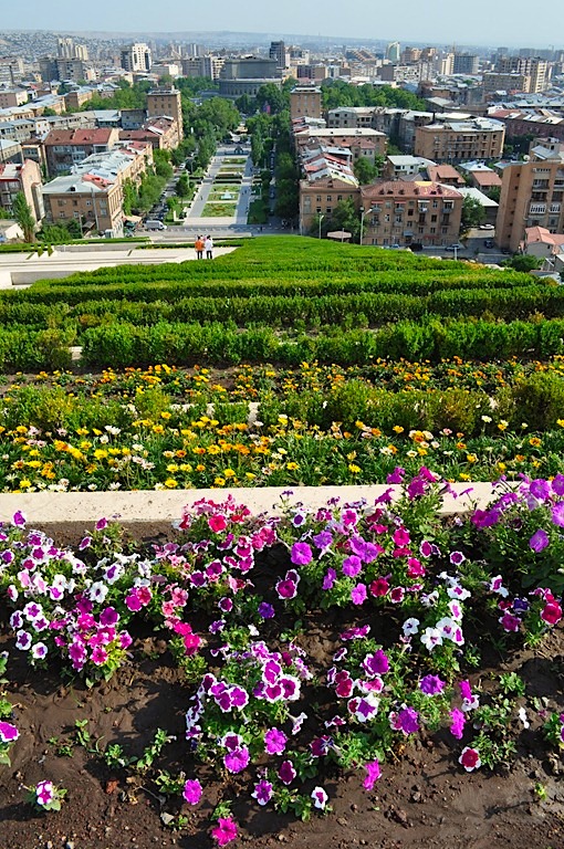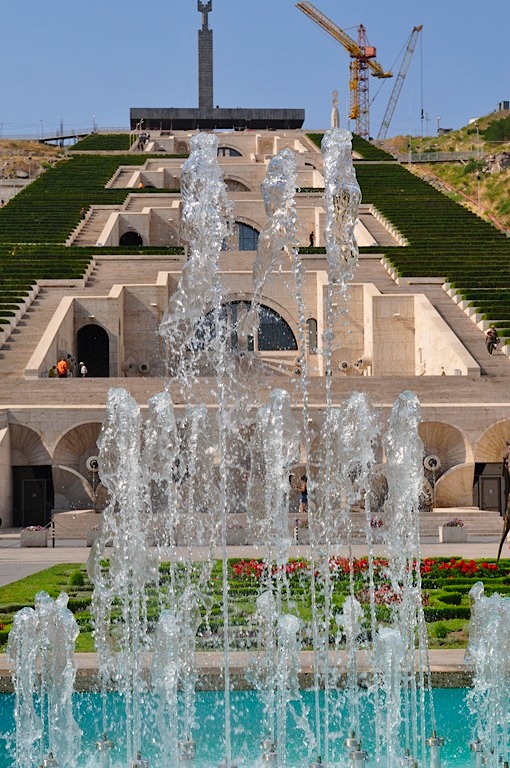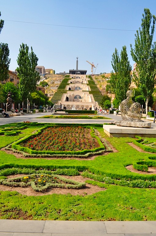 Kaskady w ErywaniuKaskady to ogromne schody zbudowane na zasadzie przewyższeń. Mamy tarasy, na które spadają wodospady, a wyżej kolejne tarasy. Robią ogromne wrażenie i są doprawdy potężne. Dość powiedzieć, że większość turystów korzysta z ruchomych schodów, aby dostać się na jeden z wyżej położonych tarasów. Na samą górę prowadzi 572 schodów, całość ma 302 metry wysokości. Kompleks ten zaprojektował architekt Aleksander Tamanian. Budowa rozpoczęła się w roku 1970. Początkowo miały tutaj znajdował się schody z ogromnym pomnikiem przyjaźni armeńsko-radzieckiej. W 1988 roku trzęsienie ziemi wstrzymały prace a następnie upadek ZSRR. W 1990 roku schody wznosiły się na 78 metrów. W 2002 roku wznowiono prace według dzisiejszej koncepcji. Wokół tego miejsca kwitnie życie towarzyskie i kulturalne. U ich podstaw artyści ustawiają swoje pomniki, budowane są niewielkie fontanny dookoła. Całość, szczególnie latem, jest przepiękna. Kaskady to idealne miejsce na spacer, w czasie którego możemy obcować ze sztuką i pięknymi widokami. Szczególnie dwa pomniki rzucają się w oczy: pomnik 50 lat przyjaźni armeńsko-radzieckiej oraz pomnik ofiar komunizmu. Dość paradoksalne jest zestawienie ze sobą tych dwóch monumentów. Miejsce to robi ogromne wrażenie. Więcej o kaskadach i nie tylko w moim przewodniku po Armenii.