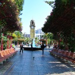 W końcu, po długim spacerze, udaje się dotrzeć do Plaza Colon. Wchodzimy do znajdującej się przy nim na ulicy Arturo Prata informacji turystycznej pod numerem 384. Jest otwarta od poniedziałku do piątku w godzinach od 8.30 do 17.30. Nad zielenią placu centralnego dominuje wieża zegarowa. Wznieśli ją pracujący tutaj Brytyjczycy, którzy pragnęli, aby przypominała ona londyńskiego Big Bena. Rzeczywiście wiele elementów wspólnych do dziś można dostrzec. Niedaleko znajduje się pochodzący z roku 1866 budynek, który w przeszłości stanowił centrum handlu w tej części Chile, a obecnie mieści się tutaj otwarte w dni robocze i soboty od 9.00 do 17.00, a w niedziele od 11.00 do 14.00 mieście Regionalne Muzeum Historyczne (Museo Regional). Bilet kosztuje 600 pesos. Teoretycznie muzeum powinno prezentować historię miasta, ale część eksponatów obejmuje czasy prekolumbijskie, a nawet czaszki i inne artefakty wykopane w okolicy przez archeologów. Opuszczamy plac centralny i kierujemy się w kierunku oceanu. Dzielnicę tę nazywa się Barrio Histórico i nadal widać tutaj bardzo wiele elementów architektury angielskiej doby XIX wieku. Prawdziwą perełką jest pochodzący roku 1887 dworzec kolejowy – ostatnia stacja na trasie Antofagasta-La Paz. Warto wybrać się na spacer promenadą, której części użytkowe ozdobione zostały tłuczoną ceramiką, co przypomina nieco Parque del Amor w Limie.