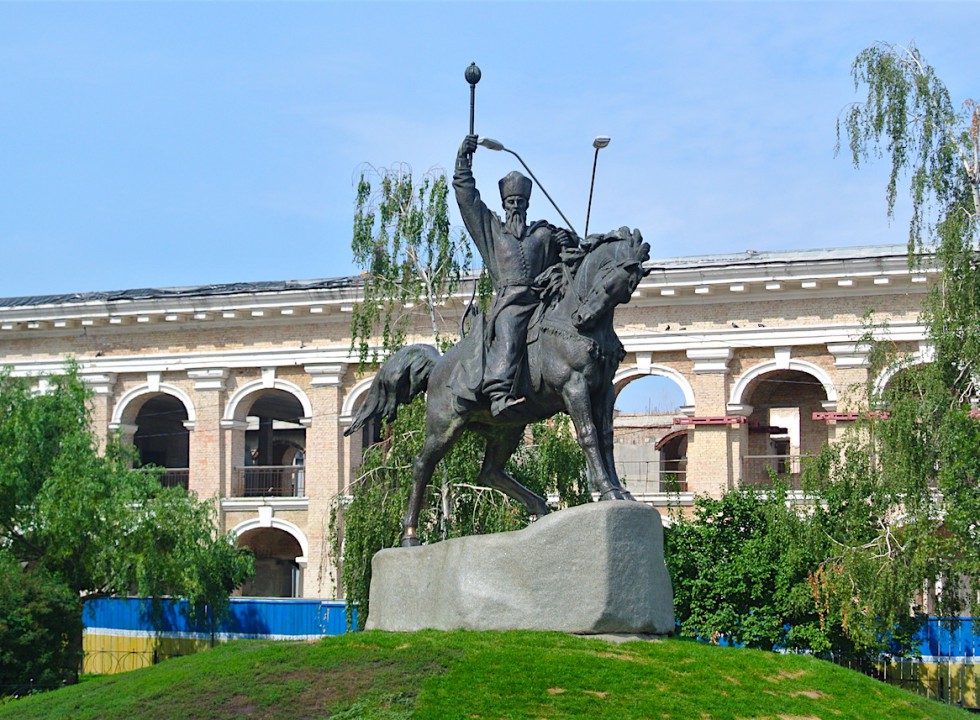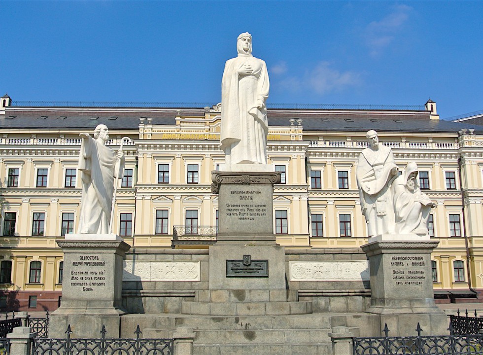 Pobudka bardzo wcześnie rano. Wychodzę z hotelu po 7.00 i w miejscowej jadłodajni zaopatruję się w śniadanie. Czasu mam bardzo mało, a atrakcji w ukraińskiej stolicy jest co nie miara. Kijów miał bardzo burzliwą historię nie tylko polityczną, ale także (a może przede wszystkim) urbanistyczną. Pierwsze kroki kieruję ku starówce, która jest nazywana Górnym Miastem. Tutaj narodził się Kijów i tutaj znajdują się jego najważniejsze zabytki. Wysiadam z metra nieopodal Placu Michałowskiego i moim oczom ukazuje się nie najładniejszy pomnik księżnej Olgi. Historia tego pomnika, podobnie jak historia Ukrainy w XX wieku, jest pełna kontrowersji. Zbudowano go w roku 1911 według projektu Iwana Kawaleridzego. Stał się jednak niemal od razu obiektem kpin i powszechnej krytyki. Twórca bronił się, że pomnik, który wzniesiono to tylko „model z gipsu” i ostateczna wersja będzie ładniejsza. Niestety artysta nie bardzo potrafił wyjaśnić, dlaczego z pompą odsłonięto „model”, a nie pomnik i w 1920 roku został rozebrany. Odbudowano go w roku 1996 z marmuru według pierwotnego projektu. Dziś, podobnie jak w przeszłości, trudno uznać go za wybitne dzieło sztuki. Może jednak jest w tym coś więcej niż tylko dzieło nieudolnego artysty. Jeśli spojrzeć na postać Olgi, która wyrżnęła niemal co do nogi plemię Drewlan, a zaraz potem przyjęła chrzest i została świętą, to artystyczne oszpecenie pomnika może nie jest całkiem nie na miejscu. Po lewej stronie Olgi widzę postać św. Andrzeja Apostoła, który miał jako pierwszy odbyć misję chrystianizacyjną na Ruś. Po prawej stronie Olgi wyrzeźbiono w marmurze postacie Cyryla i Metodego — apostołów Słowiańszczyzny.