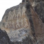 Około 15 kilometrów od wulkanów znajdują się góry, w których obejrzeć można petroglify. Najstarsze z nich zostały stworzone około 35 tys. lat temu. . Ślady działalności człowieka zostały tu odkryte przypadkowo w latach 30. XX wieku, kiedy to robotnicy zobaczyli dziwne rysunki na skale. Prace w 1939 roku rozpoczął azerbejdżański archeolog profesor, Dżafar-Zade. Do tej pory odkryto 6 tysięcy rysunków (na ok. 1000 skałach), ponad 40 kurhanów, jaskinie mieszkalne i około 100 tys. przedmiotów codziennego użytku. Ale badania prowadzone są nadal. Rysunki przedstawiają ewolucję człowieka: na co polowano, co jedzono, wytwarzano, słowem sceny z dnia codziennego. Jednymi z najciekawszych są obrazy tańca. Są to sceny indywidualne, jak też pląsające korowody. Przypominają współczesny taniec iłły (jałły – tj. polowania, wnosić zatem należy, że taniec wykonywano w związku z ubiciem zwierza). Rewelacją było odkrycie rysunku człowieka pierwotnego w łódce. Na jednym rysunku jest łódź ze słońcem na burcie do złudzenia przypominająca łodzie Egipcjan i Sumerów. W 1966 roku powstał tutaj park archeologiczny, którego misją jest ochrona tych swoistych skarbów Azerbejdżanu.