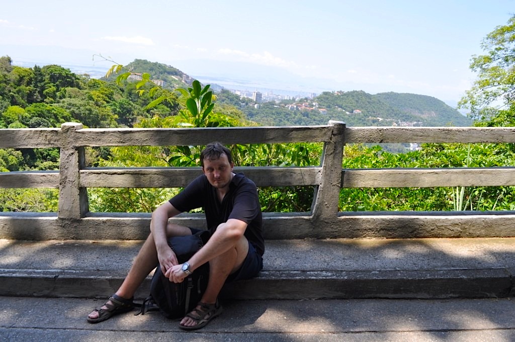 Brazylijczycy cenią sobie bardzo możliwość obejrzenia tego monumentu, dosłownie i w przenośni. Jako, że budżet zaczął się wyczerpywać, na wzgórze trzeba iść pieszo. Kolejka na szczyt kosztuje ponad 40 reali w jedną stronę! Oznacza, to, że aby jechać w dwie strony, trzeba by wydać 150 zł a to znacznie więcej niż pozostało w portfelu… W każdym razie kolejka jeździ od 8:30 do 18:30, a sama podróż trwa 20 minut. Jednak chętnych jest bardzo dużo i sporo czasu trzeba poświęcić na czekanie na wolny wagonik. Również od razu trzeba zdecydować, czy decyduje się na podróż w obie strony, czy w jedną, bo na szczycie nie ma kas biletowych). Podejście trwa dość długo. Swoją drogą nie znalazłem informacji, aby ktoś wchodził tutaj pieszo i jakoś nikogo nie mijam po drodze. Pusta droga, tylko samochody i busy wwożące turystów. Upał, potworny upał. Pierwsze 2 km w słońcu, potem trochę lepiej bo zaczął się największy las miejski na świecie – Narodowy Parki Tijuca, który sam w sobie jest niezwykle ciekawy. Podzielony został na trzy części, a na każdą z nich możnaby poświęcić cały dzień. Aż trudno uwierzyć, że miejsce to zostało zalesione dopiero na początku XX wieku (wcześniej była tu plantacja kawy). Na 3200 hektarach można spotkać wiele gatunków roślin i zwierząt, a także podziwiać jeziora i wodospady. Do parku można wchodzić przez cały rok za darmo, jednak odradza się przebywania w nim po zmroku. Cała trasa, od podstawy góry ma ponad 10 km. Strażnik przy wejściu do Parku Narodowego, w którym, leży góra patrzy zdziwionym wzrokiem, że ktoś chce iść na szczyt pieszo i tłumaczy, że to daleko i dużo kilometrów. Wchodzenie ma jednak ogromny plus… widoki niezapomniane. o 2 godzinach udaje się dojść do punktów, gdzie czeka jednak niemiła niespodzianka. Okazuje się, że i tak trzeba kupić bilet za 26.5 reala (ponad 40 zł!). W cenie biletu jest busik, który podwozi podróżnych przez kilka ostatnich serpentyn. Można też dalej iść pieszo, ale bez biletu zobaczy się tylko plecy Chrystusa… Nic, nie ma wyboru. Po wejściu ostatnie 200 metrów do samej figury pokonać można ruchomymi schodami. Widoki ze szczytu niezapomniane…