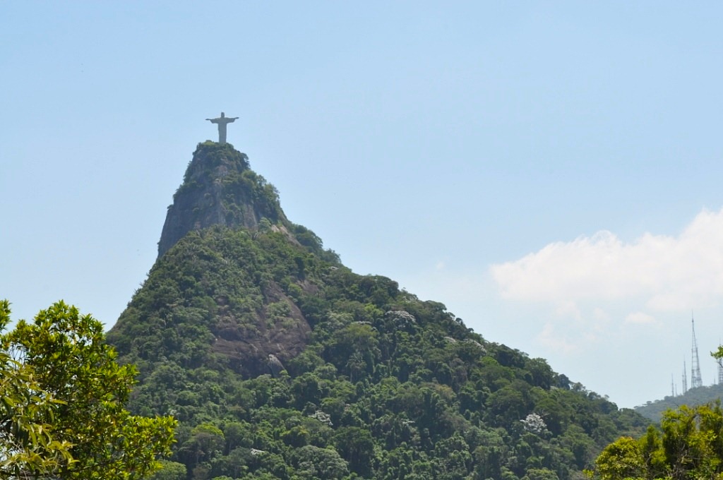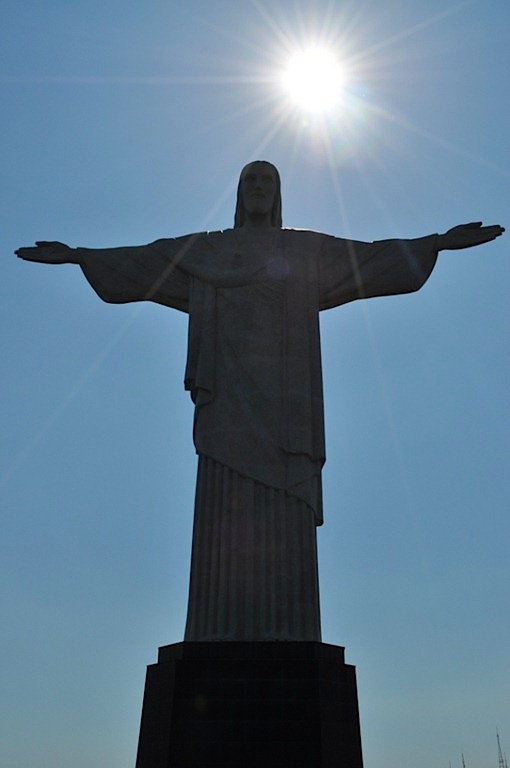 Ostatnie dwa dni pobytu w Rio poświęcić trzeba na to, czego obejrzeć się nie udało przy pierwszym podejściu. Cel pierwszy, znana na całym świecie figura Chrystusa. Pomysł zbudowania statuy w Rio de Janeiro pojawił się już w 1921 roku i miała nią zostać głowa Kolumba, umieszczona na Głowie Cukru (Pão de Açúcar). Jednak to idea Hektora da Silvy Costy spotkał się z największym uznaniem, a na jego realizację zaczęto zbierać pieniądze nawet(wówczas było to oburzające) w kościołach. Pierwotny projekt przedstawiał posąg Jezusa z globem ziemskim w dłoni. Jednak w efekcie końcowym Chrystus ma rozłożone ramiona w kierunku północ-południe, którymi obejmuje mieszkańców miasta (złośliwi mówią, że tylko tych bogatych, bowiem fawele znajdują się za jego plecami). W ten sposób w 1931 roku, na 8 metrowym cokole, wzniesiono 38 metrowy pomnik Chrystusa Odkupiciela (Cristo Redentor). Waży on 700 ton. Odsłonięcie pomnika z symbolicznym zapaleniem świateł miało miejsce trzy razy: w 12 października 1931 r. – dokonał tego twórca oświetlenia Gugliemo Marconi, gdy zainstalowano nowe oświetlenie powtórzył to papieża Paweł VI, z kolei 12 października 1981 zrobił to Jan Paweł II, który uświetnił obchody 50 lat czuwania statuy nad miastem. Posąg znajduje się na wysokości 710 m. n.p.m. i jest to dużo, zważywszy, że w moim przypadku marsz rozpoczyna się praktycznie z poziomu morza. W górach początek trasy ma z reguły miejsce na sporej wysokości, a wysokości względne np. w Tatrach są z tą porównywalne. Początkowo wzgórze nazywano Górą Kuszenia, a to ze względu na wspaniały widok rozpościerający się pod stopami oglądającego. Później zmieniono nazwę na Corcovado, czyli Garbus, a to ze względu na kształt wzniesienia, które przypomina zgarbionego staruszka.