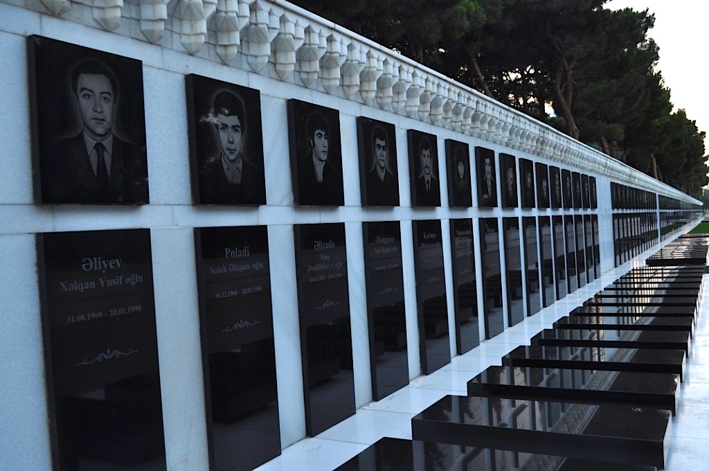 dsc_0488Nad starym miastem w Baku wznosi się wzgórze, a na nim umiejscowiono Shahidlar Hiyabany czyli Męczeńską Drogę. Dlaczego nosi taką nazwę o tym będzie za chwilę. Na wzgórze wspinaczka zajmuje około pół godziny. Można wjechać na nie kolejką (koszt 2 manaty), ale spacer jest przyjemniejszy, mimo że męczący. Ze wzgórza roztacza się wspaniały widok na Baku. Widok urzekający. Kiedy jeden z najwybitniejszych poetów rosyjskich, Maksim Gorki, przybył do Baku, patrząc na nie z góry orzekł, że wygląda jak Neapol. Trudno się z tym nie zgodzić, bowiem zbocza wzgórza układają się w tarasy, a scenę tworzy błękitna tafla wody Zatoki Bakijskiej. Aby dojść do punktu widokowego, trzeba przejść alejami, wzdłuż których ustawiono setki nagrobków ludzi, którzy zginęli w dwóch niezwykle ważnych dla Azerów konfliktach. Pierwszy z nich to tak zwane “dni styczniowe” z 1990 roku. Wybuchły wówczas zamieszki wymierzone w stacjonujące w mieście oddziały radzieckie. W czasie nieudanej pacyfikacji zginęły setki Azerów. Drugie wydarzenie to wojna azersko-armeńska o Górski Karabach w 1992 roku. Pochowano tutaj tysiące ofiar, tego konfliktu. Groby znajdują się wzdłuż alej, które zbiegają się na szczycie wzgórza. Oprócz panoramy miasta obserwować można ogromną, największą na świecie flagę państwową. Ma ona wymiary 70 na 30 metrów. Szczególnie imponująco wygląda wobec otaczających ją budynków i przejeżdżających samochodów, które wydają się być maleńkie. W końcu na szczycie można podziwiać szklane domy… Więcej o tym miejscu można przeczytać w moim przewodniki po Azerbejdżanie i Górskim Karabachu.