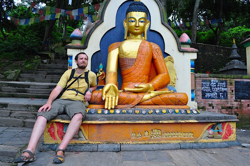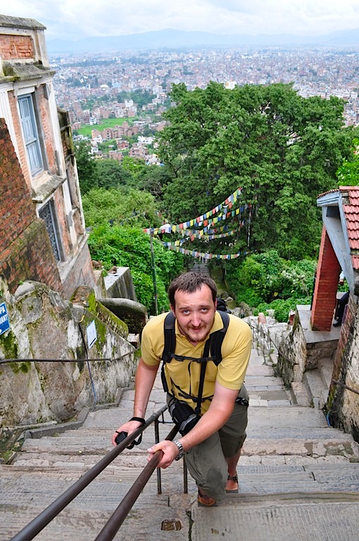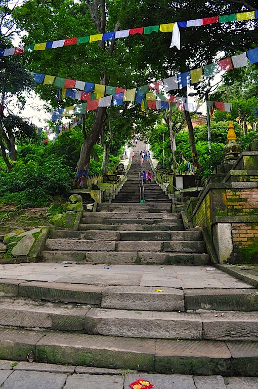 Po przejściu śmietniczka w oddali zobaczyłem Stupę (zdjęcie powyżej). Prowadzi do niej 365 bardzo stromych schodów (dobra przeprawa przed trekkingiem w Himalajach).