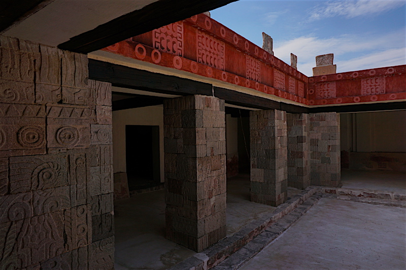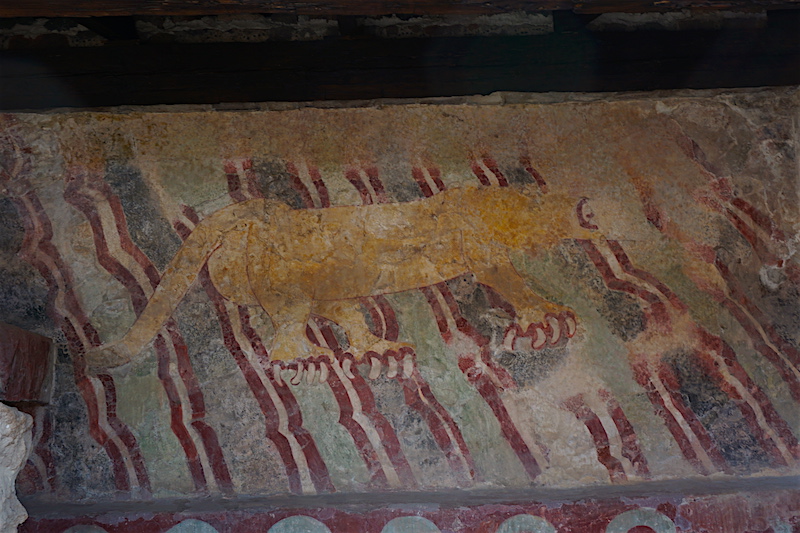 Podczas prowadzonych prac wykopaliskowych odkryto fragmenty malowideł naściennych zdobiących świątynie i Pałac Zacukali, przedstawiających procesje kapłanów, wojowników, mitologiczne wizerunki bogów oraz zwierząt. Do najciekawszych zachowanych fresków należy przedstawienie raju boga deszczu – Tlalocan. Na malowidle widoczna jest góra, jezioro i dwie rzeki u jej podstawy. Wokół rosną drzewa, krzewy i kwiaty. Wśród nich widnieją kolby kukurydzy i krzewy kakao. Fruwają motyle, ważki. Widoczne są też sylwetki ludzi, odpoczywających, bawiących się. Nie jest pewne, czy postacie ludzkie symbolizują zmarłych przebywających w raju. Tlaloc przedstawiony jest w swojej masce, z pierścieniami wokół oczu, wystającymi kłami i rozdwojonym językiem węża. Na głowie ma pióropusz, a z jego rąk spływają krople deszczu, wody dającej życie. Znaleziono też zachowaną ceramikę, m.in. bogato zdobione cylindryczne, trójnożne naczynia ze stożkowatymi pokrywami. Do ważnych zabytków należą także kamienne maski rytualne.