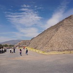 Teotihuacán jest jednym z symboli Meksyku. Jest to też najczęściej odwiedzane stanowisko archeologiczne w tym kraju. Nawet Chichén Itzá nie może się równać z nim pod względem tłumów, jakie tutaj przybywają każdego dnia. Ponieważ zaś być w Meksyku i nie odwiedzić tych piramid to trochę „się nie liczy”, z samego rana łapiemy autobus z dworca del Norte i jedziemy zobaczyć to miejsce „must visit”. Złapać autobus to żaden problem. Codziennie dziesiątki jeżdżą w kierunku Zona Archeologica. Wysiadamy z metra, kilkadziesiąt kroków i kupujemy bilety. Ważne jest tylko to, aby kupić bilet właśnie do tej Zony, a nie do pobliskich miejscowości. Godzinę w wygodnym i nazbyt klimatyzowanym pojeździe i stajemy pod bramą parku archeologicznego. Kupujemy bilety i… przeraża nas ogromny tłum oraz wszechobecni sprzedawcy wszystkiego. Zanim o samym stanowisku, słów kilka o miejscu, które przyciąga takie mrowie ludzi.