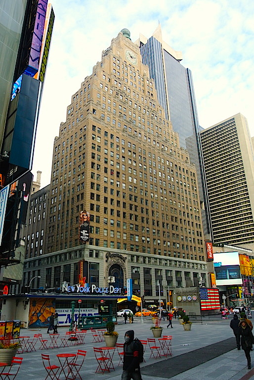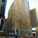Pobudka wcześnie rano. Plan na dziś – zwiedzić centrum Manhattanu. Pierwszem celem jest Theater District. Tutaj przebiega najbardziej znany odcinek słynnego Broadway. Nazywany (od czasu pojawienia się tutaj kin w latach 20tych XX wieku) „ulicą świateł”, do dziś jest jednym z najbardziej znanych symboli Nowego Jorku. Rozpoczynamy spacer a pierwszym napotkanym obiektem jest Paramount Boulding. Obecnie jest to budynek trochę zapomniany. W przeszłości na jego parterze mieściła się sala koncertowa, gdzie regularnie występował Frank Sinatra. Budynek powstał w roku 1927. Charakterystyczne w nim jest to, że ma kształt zwężającej się ku górze piramidy z ogromnym zegarem na szczycie. Idąc dalej napotykamy się na Alwyn Court Apartments. Jest to jeden z najpiękniej dekorowanych płaskorzeźbami budynków w Nowym Jorku. Jego neorenesansową fasadę zaprojektowano w roku 1909.