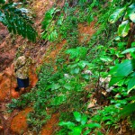 Pobudka bardzo wcześnie. To zdanie to chyba powinien być motyw przewodni wpisów z Gwadelupy. Zatem pobudka. Ostatni pełny dzień pobytu na wyspie. Jutro o 20-tej samolot powrotny do Polski. Plan na dziś jest dość napięty. W końcu trzeba wykąpać się na słynnych plażach Saint-Anne, ale najpierw… odkrywanie. Celem jest odkrycie jednego z najpiękniejszych i najrzadziej odwiedzanych przez turystów wodospadów na Grande Terre. Dotrzeć do niego jak się okaże nie będzie łatwo, dużo wspinania, walki z junglą, móstwo błota i bardzo stromo. Ale po kolei… Zatem pobudka. Moskitiera i wieczorna walka z komarami okazała się skuteczna i wychodzę spod niej niepogryziony. Na śniadanie trzeba wyjeść zapasy przywiezione z Polski, w stosownych proporcjach wymieszane z miejscowymi specjałami. Po nim obowiązkowa już lektura, trochę pisania, niestety dużo pracy – nad kolejnym przewodnikiem turystycznym i trzeba się zbierać. Celem na dzisiaj jest dotarcie do jednego z rzadziej odwiedzanych i chyba najpiękniejszych wodospadów Gwadelupy. Ma on pewną cechę szczególną. Otaczają go skały, po których spływa ciepła, ogrzana od wulkanu woda. Trzeba to koniecznie zobaczyć i poczuć! Najpierw samochodem terenowym ponad pół godziny jazdy. Wodospad leży w sercu Grande Terre. Dojeżdżamy do miejsca, niepozornego. Trzeba zatrzymać się na niewielkim parkingu, który wygląda jak teren prywatnej posesji i przejść za popadający w ruinę budynek. Za nim znajduje się ścieżka. Trudno się dziwić, że nie odwiedzają tego miejsca turyści. Najpierw trudne zejście (okaże się potem, że w porównaniu z podejściem skrótem, zejście jest banalne). Bardzo dużo błota, bardzo mokro i jeszcze bardziej ślisko. Trzeba schodzić bardzo powoli, asekurować się lianami i starać się trzymać czegokolwiek, co jest dość skomplikowane – po pierwsze ślisko, po drugie liście bywają ostre a po trzecie (i nie najmniej ważne) nie wiadomo, jakie zwierzęta czają się w krzakach. Im niżej tym wyraźniej słychać huk spadającej wody. W końcu udaje się zejść. Widok rzeczywiście niesamowity. Wodospad… krystalicznie czysta woda. W basenie pod nim można się wykąpać. Na półkach skalnych strugi wody tworzą naturalne bicze wone. Właściwie grzechem jest się nie wykąpać. Do wody. Bardzo zimna, bardzo, bardzo zimna. Okazuje się jednak, że skały w okolicy minijeziorka są ciepłe. Spływa z nich ciepła woda wulkaniczna, która ogrzewa skały. Najpierw więc pod ciepłą wodę, a potem stopniowo można zejść do zimnej, krystalicznej wody. Kąpanie się tutaj jest trudne. Nie z powou wody, lecz z powodu ostrych skał które leżą na dnie. Bardzo łatwo można porozcinać stopy i nie tylko. Udaje się jednak jako tako wyjść z tego cało. Godzinna kąpiel i ożeźwiony i czysty (jak się okaże chwilowo) ruszam spowrotem. Wspinaczka nie jest łatwa. Mnóstwo błota, spadającej, osuwającej się ziemi.