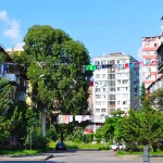 Długo spałem, potem spotkanie z ormiańskimi przyjaciółmi, i do łóżka. Dnia następnego o 6 rano pobudka, śniadanie i o 9tej mam autobus do Batumi. Właściwie to ten sam, którym przyjechałem z Erywania z tym, że tym razem wraca do Armenii. Autobus miał wyjechać o 9tej, ale upychanie w niego kontrabandy trochę zajęło (foto z przystanku obok) i wyjechaliśmy przed 11tą. Dworzec autobusowy, a właściwie to co za niego robi w Stambule to bardzo ciekawe miejsce. Obok siebie stoją autobusy pasażerskie, towarowe tiry, biura podróży, biura transportowe, różne punkty cargo – słowem można stąd przewieźć lub przemycić wszystko. I jest przewożone. Do naszego autobusu ładuje się: proszki do prania, środki czystości, mopy, szczotki, słodycze, olej, konserwy – słowem wszystkie możliwe do przewiezienia artykuły. Najogólniej rzecz biorąc system wygląda w sposób następujący: do Turcji przemyca się alkohol i papierosy, a z Turcji wszystko inne. Po 18 godzinach docieramy do Batumi. Szukam hotelu i znowu nocleg sam mnie znalazł. Gdy znalazłem się na krawężniku, myśląc, w którą stronę by tu iść, podeszła do mnie pewna pani i zaproponowała, że za 20 lari mnie przenocuje. Dostałem bardzo ładny, przestronny pokój a co najważniejsze niemal w centrum miasta! Batumi, Ech Batumi… co prawda herbacianych pól o których śpiewały Filipinki już prawie nie ma, ale jest co zwiedzać. Ponieważ Batumi miało być przystankiem a poza tym znam dobrze to miasto (zobacz więcej o nim w moim przewodniku po Gruzji, o TUTAJ) wyruszyłem zwiedzić ogród Botaniczny. A że idąc do ogrodu spaceruje się po promenadzie to dwa (moim zdaniem) najpiękniejsze miejsca w tym mieście, znów udało się zobaczyć 🙂 Ogród botaniczny jest niezwykły… Jest to jedyny ogród botaniczny na świecie, w którym obejrzeć można wszystkie strefy klimatyczne od tropikalnej do wysokogórskiej (himalajskiej!). Dojechać można tutaj spod dworca kolejowego w Batumi. Koszt to zaledwie 1 GEL. Ogród jest gigantyczny (111 ha). Obejrzeć można go albo spacerując, albo też w ramach objazdowej wycieczki (minibusy odjeżdżają spod bramy ogrodu). Koszt biletu to 15 GEL. Na zwiedzenie wszystkich stref klimatycznych konieczne jest zarezerwowanie sobie całego dnia. Z góry, na której znajduje się ogród, podziwiać można słynne herbaciane pola i Morze Czarne…. Pięknie tu…