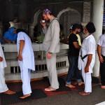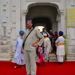 Po długiej i męczącej podróży, noc minęła szybko. Rano nieco zaspałem i wyruszam w drogę. Do złotej świątyni dojechać można rikszą rowerową albo motorikszą. Ponieważ jest do niej od mojego locum przy dworcu kolejowym około 4 km, decyduję się na motorikszę (foto niżej). Okazuje się szybko, że dojechać można na około 500-600 metrów do świątyni. Resztę drogi trzeba przebyć pieszo odpędzając się od ludzi próbujących wyłudzić parę rupii np. na chustę, którą i tak za darmo można wypożyczyć w samej świątyni. Świątynia jest piękna i każdy sikh marzy, aby choć raz w życiu pojawić się w niej. Przed bramą należy zdjąć buty oraz plecaki oraz zostawić bagaż w przechowalni (sikhowie są bardzo uczciwi i z plecaka na pewno nic nie zginie). Nie wolno wnosić do środka tytoniu, noży (poza kirpanami) oraz wyrobów ze skóry (paski od zegarków, paski do spodni itp.). Złota świątynia znajduje się po środku jeziora nieśmiertelności, które ma wymiary 154-158 m. i głębokość 5 m. Dokonuje się w nim rytualnych kąpieli a także można w nim podziwiać kolorowe karpie. Świątynia jest dwukondygnacyjna (oraz dodatkowo taras na dachu) i niewielka – 12.25 metra kwadratowego. To harmonijne połączenie stylów architektonicznych mongolskiego oraz radźpudzkiego. Całość zwieńczona jest kopułą w kształcie odwróconego lotosu, do pozłocenia której zużyto według różnych źródeł od 100 do 750 kg. złota. Do świątyni prowadzi most, po którym droga ma symbolizować pośmiertną wędrówkę dusz (sami staliśmy na nim ponad godzinę w długiej kolejce). W kompleksie świątynnym znajduje się także pięciokondygnacyjna budowla stanowiąca miejsce obrad parlamentu sikhijskiego, darmowa stołówka (każdy może tam zjeść ile da radę!), muzeum sikhów i wiele innych. Kilka zdjęć celem ilustracji: